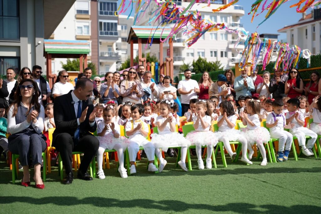 Konyaaltı Belediyesi bünyesindeki kreşlerde 400’ü aşkın çocuğa eğitim verdiklerini vurgulayan Başkan Cem Kotan, “Çocuklarımıza gösterdiğiniz emek için tüm velilerimize teşekkür ediyorum. Kreşlerimizde çocuklarımıza eğitim veriyoruz ve bununla da gurur duyuyoruz. 23 Nisan, Ulu Önderimiz Gazi Mustafa Kemal Atatürk’ün güzel çocuklarımıza armağan ettiği bir bayram. Bizler Konyaaltı Belediyesi olarak, Atatürk’ün açtığı yoldan ilerlemeye, çocuklarımızı sevmeye ve onların eğitimlerine destek vermeye devam edeceğiz. Öğretmenlerimiz, velilerimizin bizlere emanet ettiği çocuklara gözleri gibi bakıyorlar. Tüm çocukların 23 Nisan Ulusal Egemenlik ve Çocuk Bayramı kutlu olsun” diye konuştu.