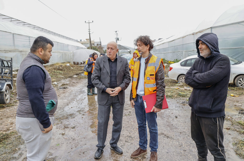 olan şiddetli yağış sonrasında oluşan selde zarar gören seralar ve evlerde hasar tespit