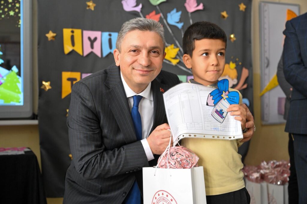 Vali Hulusi Şahin, Dr. Gülşen–Dr. Baki Özpınar İlköğretim Okulu’nda düzenlenen 2025-2026 Eğitim Öğretim Yılı İlk Dönemi Karne Dağıtım Töreni’ne katıldı.