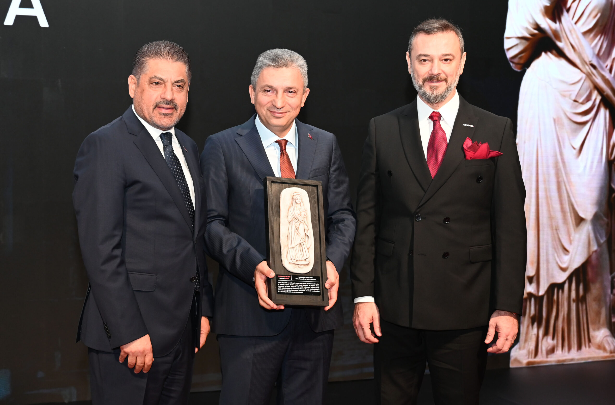 Konuşmalarından ardından BAKSİFED Başkanı Mustafa Cengiz ve TÜRKONFED Başkanı Süleyman Sönmez katılımlarından dolayı Antalya Valisi Şahin’e teşekkür plaketi verdi.
